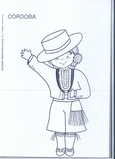 Los niños hicieron un sombrero cordobés cuya silueta saqué de este enlace ampliándolo. Yo me encargué de recortarlos y hacerles unas marcas para que ellos les pegaran los gomets.